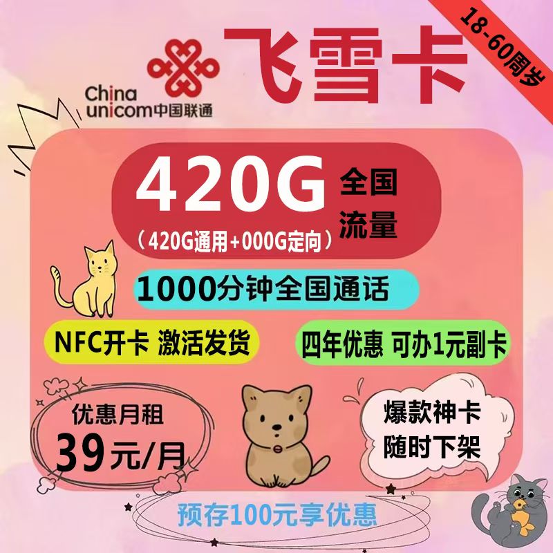 新品联通39元420G全国流量